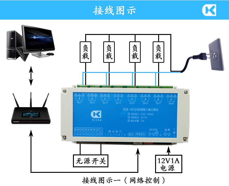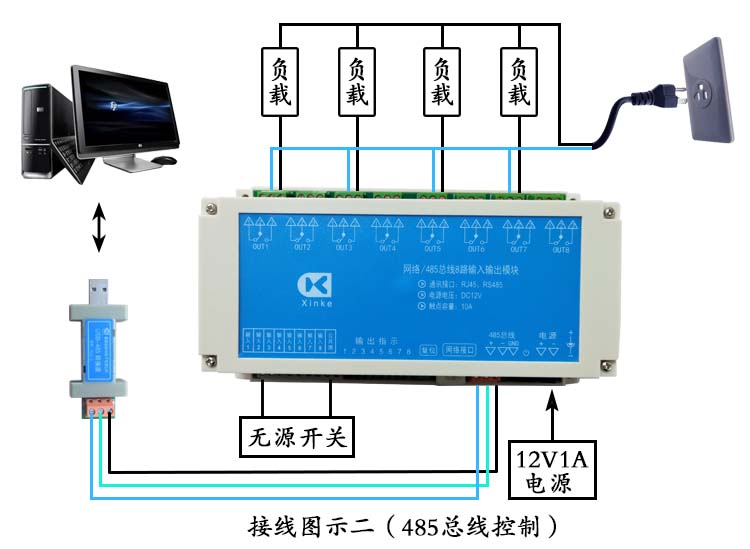 網(wǎng)絡(luò)串口RS485總線1/4/6/8/16路無(wú)源開(kāi)關(guān)量輸入10A繼電器輸出模塊